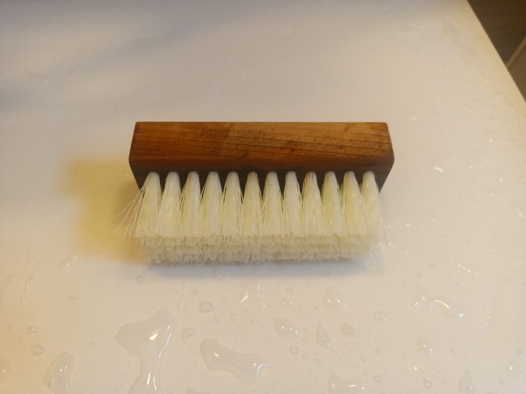 ソール部分には、毛先が硬く幅の細いブラシを使います。