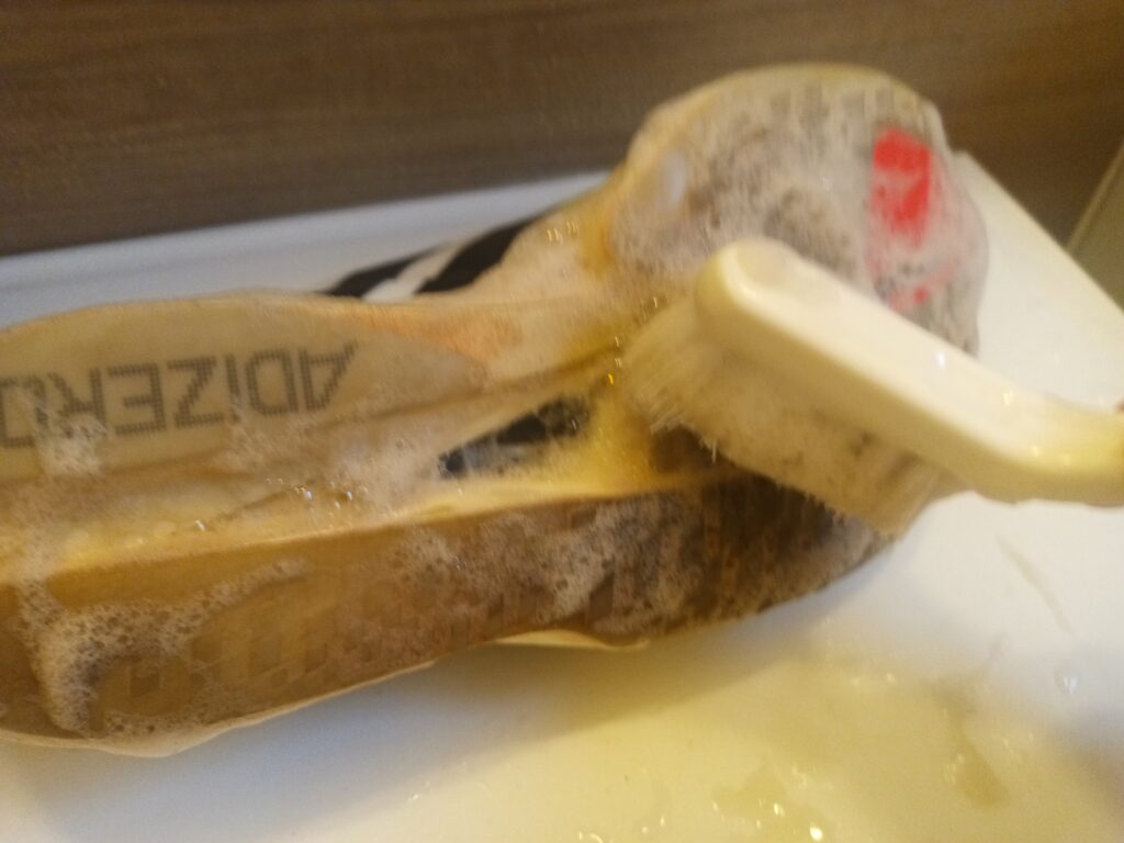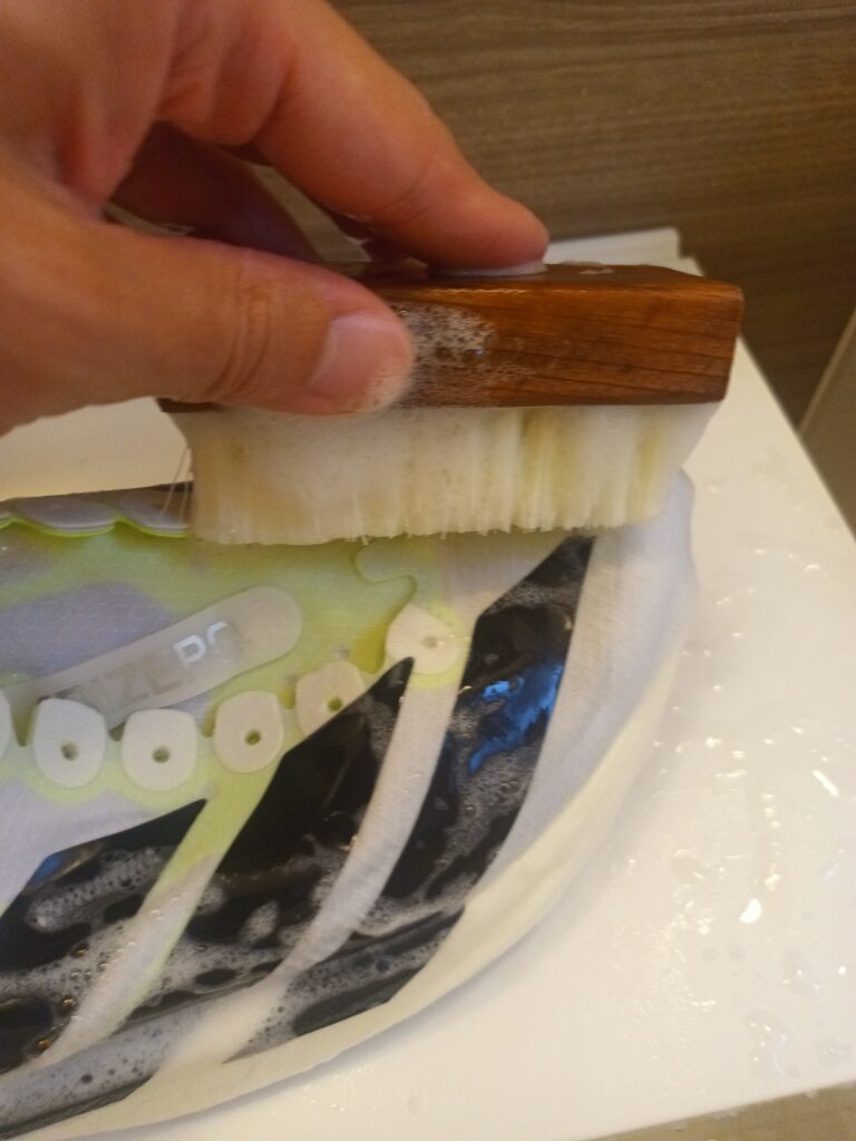 落とした汚れがアッパーに移らないよう、泡はすぐに洗い流しましょう。