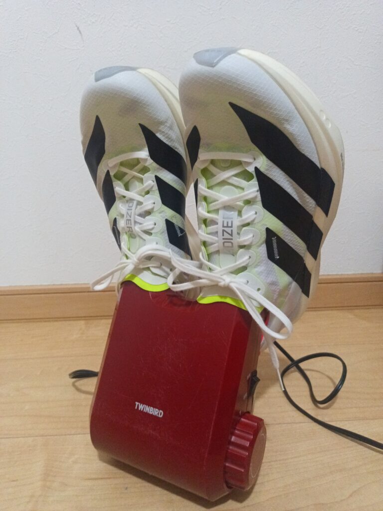 靴用ハンガーやシューズドライヤーで風通しよく乾かします。