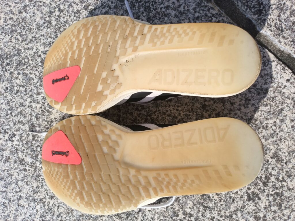 アディゼロジャパン9、15キロほど走っても接地感の変化が少ないと感じます。